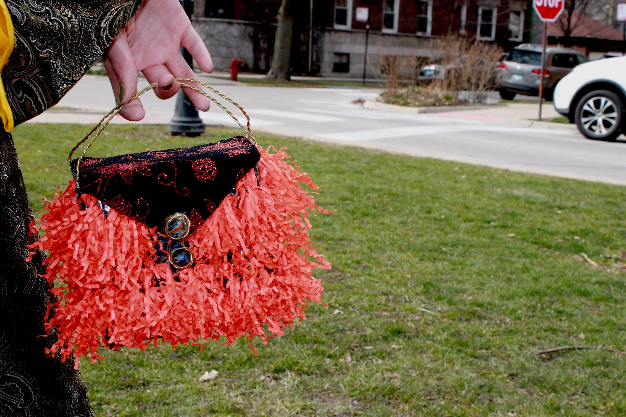 Purse made from the cardboard box the materials came in with marbles as the closure.